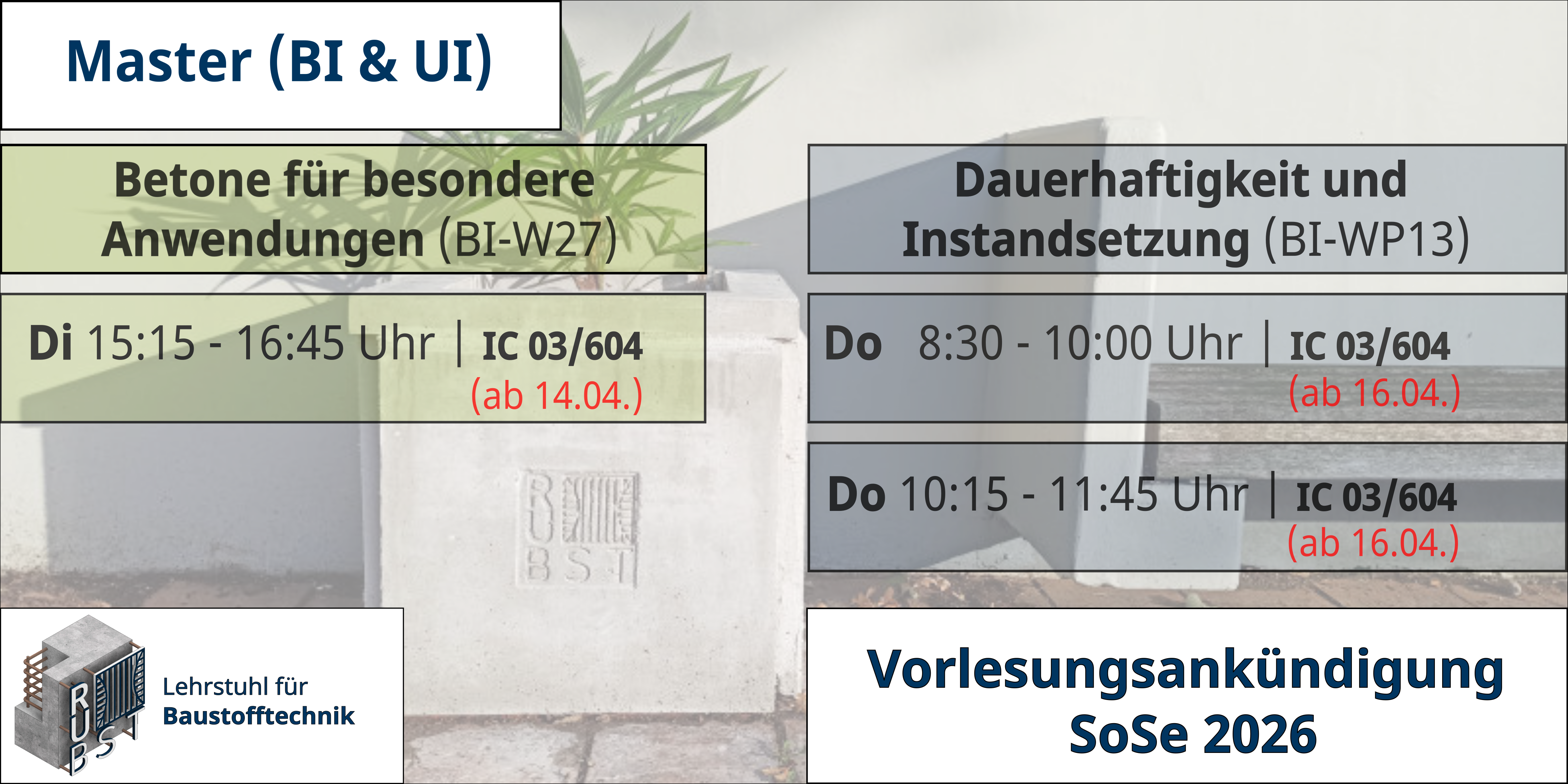 The Chair of Construction Materials Technology wishes you every success in the coming semester!