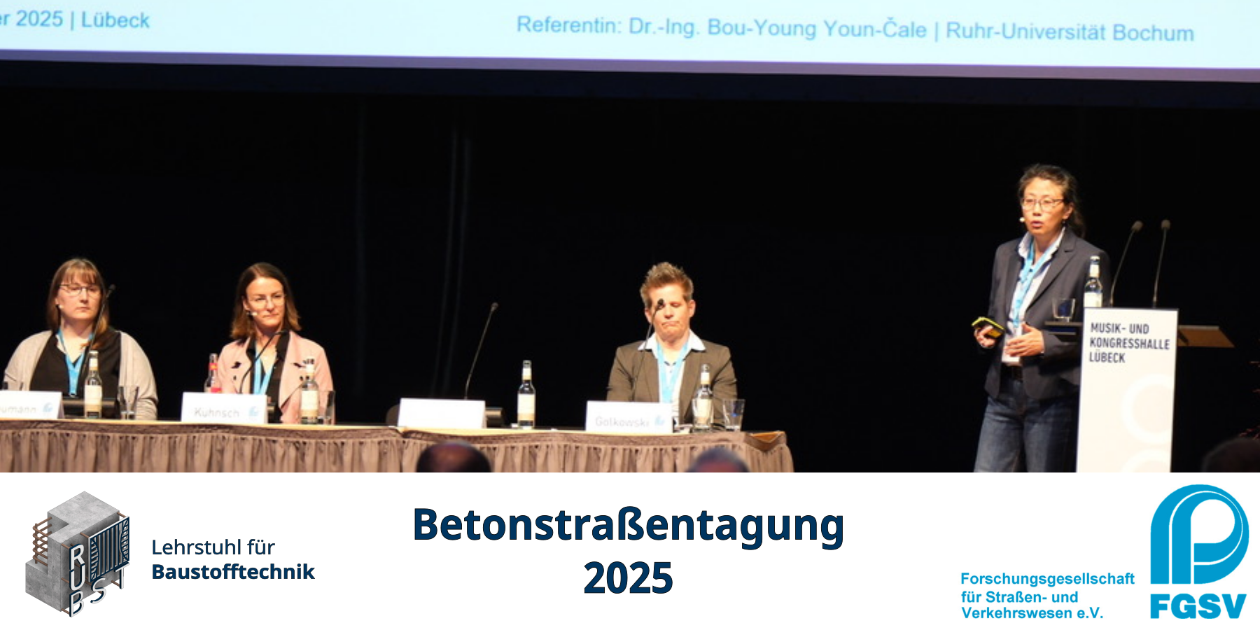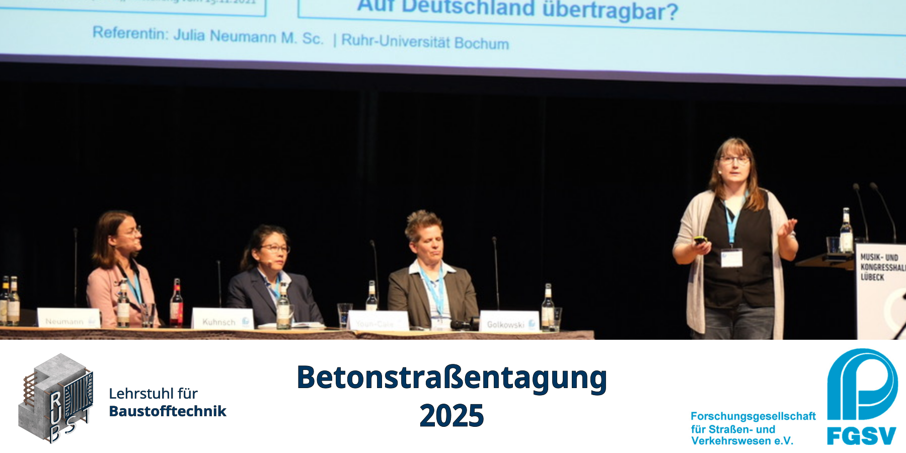 The Chair of Construction Materials was represented at the Concrete Road Conference in Lübeck with two specialist presentations. The conference focused on durability, environmental awareness, and innovation, and showed how quality and sustainability go hand in hand in road construction.